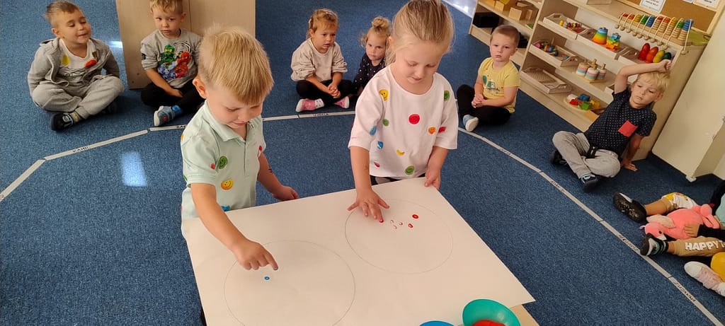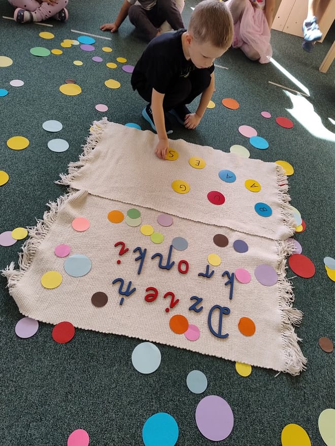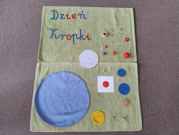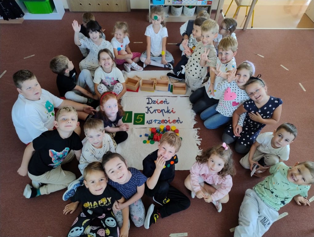 15 września 2025 roku w naszym przedszkolu obchodziliśmy Międzynarodowy Dzień Kropki. Dzieci poznały historię dziewczynki o imieniu Vashti – bohaterki opowiadania Petera H. Reynoldsa „The Dot”. Przypomnieliśmy sobie, jaki jest cel obchodzenia tego „święta”. Historia bohaterki opowiadania pokazała nam, że mimo przeciwności losu, nie wolno się poddawać. Zawsze trzeba wierzyć w siebie i wskazywać innym drogę wytrwałego dążenia do realizacji marzeń. Rozmawialiśmy na temat cierpliwości w podejmowanych działaniach. Zastanawialiśmy się, co oznacza słowo talent. W ramach świętowania Dnia Kropki w naszym przedszkolu dzieci brały udział w grach dydaktycznych, zabawach, które związane były tematycznie z kropkami. Zabawy te uczyły kreatywności, wytrwałości i pomagały w odkrywaniu swoich mocnych stron.