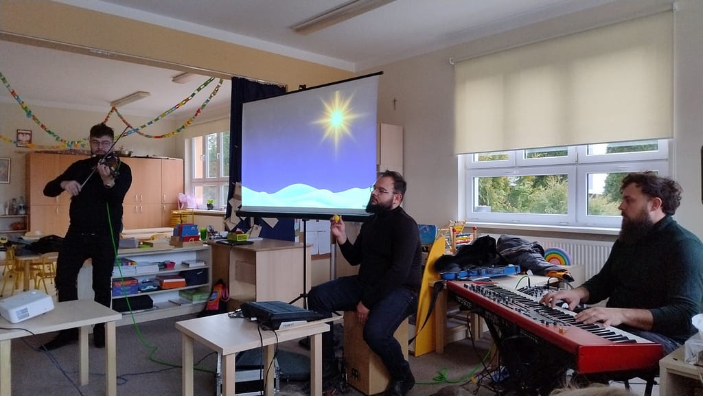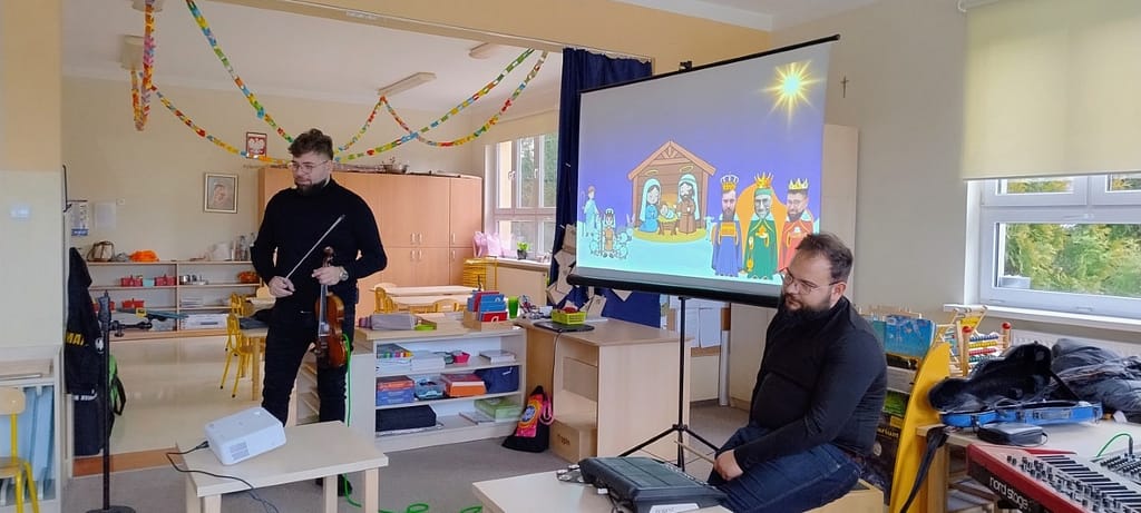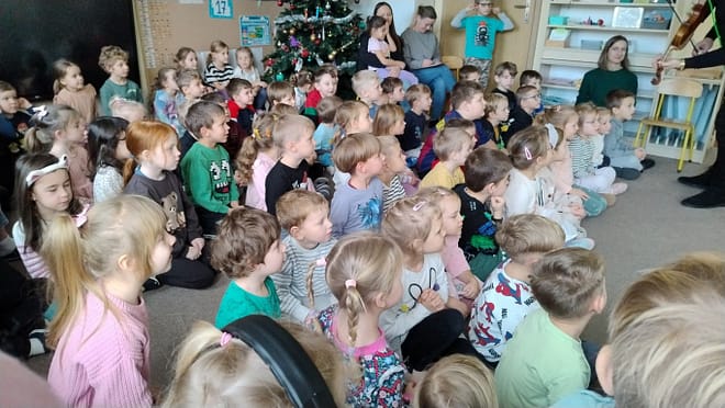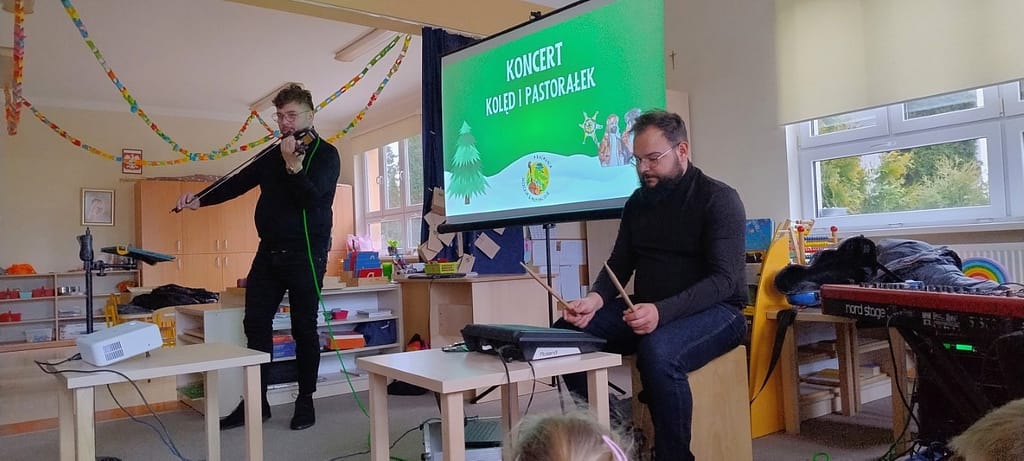 Podczas kolejnej wizyty Jaszczur &Przyjaciele w naszym przedszkolu mogliśmy wspólnie zaśpiewać kolędy oraz odpowiadać na zagadki związane z Mikołajem, adwentem oraz Świętami Bożego Narodzenia. Dzieci wraz z gośćmi zaśpiewały m.in; „Wśród nocnej ciszy”, „Dzisiaj w Betlejem”, „Do szopy, hej pasterze”, „Cicha noc…” oraz „Mędrcy świata, Monarchowie…”. Dziękujemy za piękne spotkanie muzyczne i wprowadzenie nas w nastrój zadumy nad zbliżającymi się świętami.