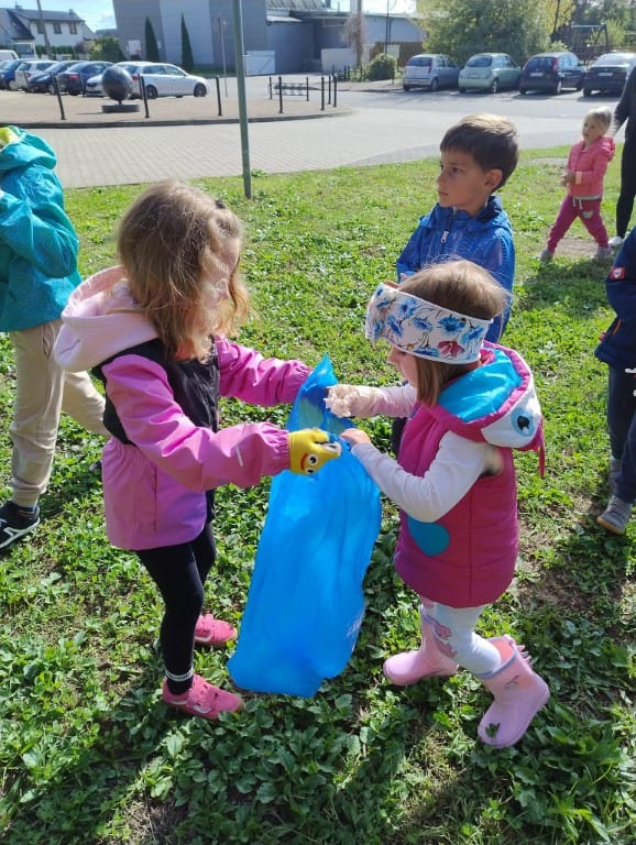 Sprzątanie świata jest międzynarodową kampanią, która odbywa się co roku pod koniec września. Podobnie jak w ubiegłym roku nasze przedszkole włączyło się w akcję sprzątania świata. 30 września wszystkie przedszkolaki wraz ze swymi opiekunami spacerowały w okolicach przedszkola w celu zbierania śmieci, które leżały w różnych nieprzeznaczonych do tego miejscach. Celem akcji było przypomnienie dzieciom, jak ważne jest szanowanie środowiska. W tym dniu próbowaliśmy również odpowiedzieć na pytania: w jaki sposób każdy z nas może dbać o miejscowość, w której mieszka oraz jakie działania mogą przyczynić się do tego, aby troszczyć się o planetę Ziemię.