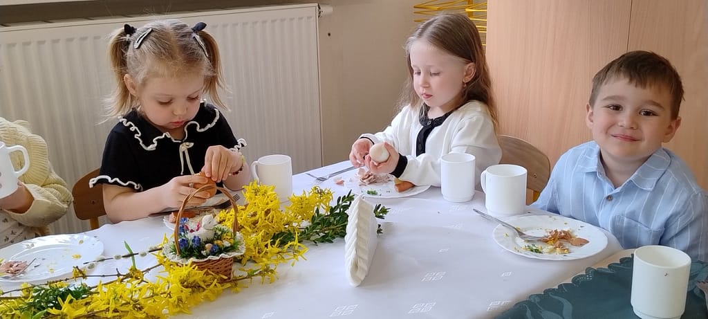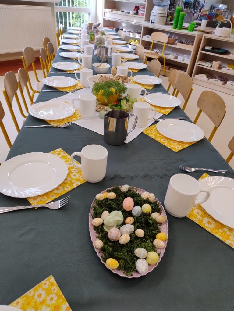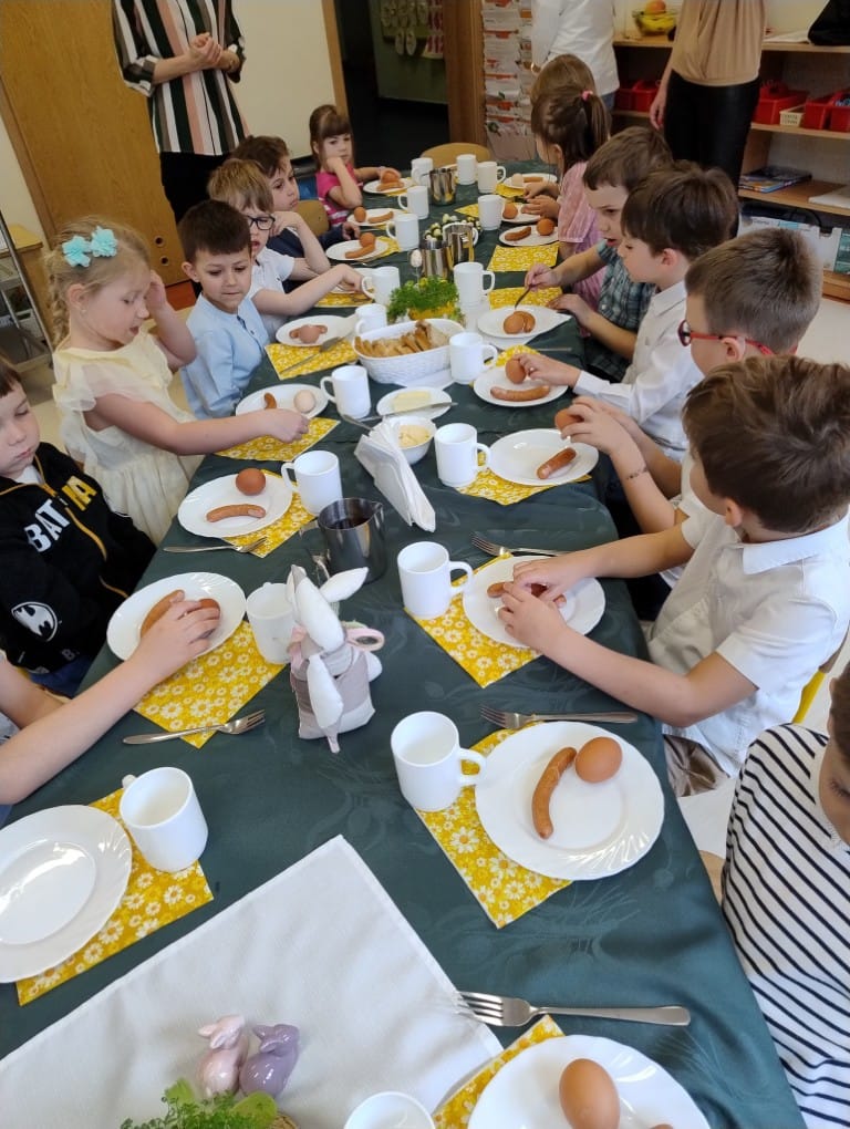 Mijający – Wielki Tydzień – przebiegał w naszym przedszkolu w atmosferze zadumy nad zbliżającymi się Świętami Wielkanocnymi. W Wielki Czwartek usiedliśmy wspólnie do uroczystego posiłku, któremu towarzyszyły serdeczne życzenia świąteczne. Dyrekcja oraz grono pedagogiczne Niepublicznego Przedszkola „Pod Kasztanami” życzą wszystkim naszym przedszkolakom oraz ich bliskim zdrowych oraz radosnych Świąt Wielkanocnych.