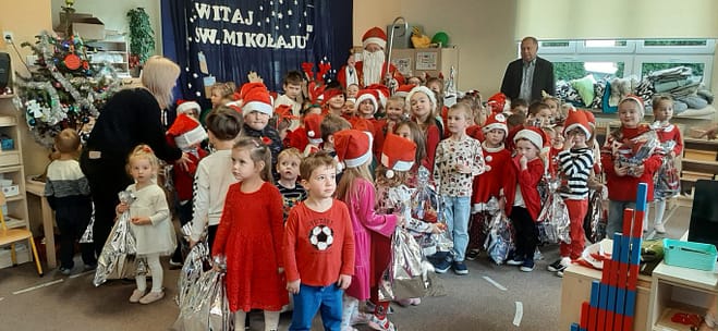We wtorek 12 grudnia nasze Przedszkolaki obdarowane zostały prezentami od Mikołaja, któremu towarzyszył Pan Wójt Grzegorz Kozioł wraz z przedstawicielami Gminy Tarnów. Wspólnym kolędowaniem oraz piosenką o Świętym Mikołaju przywitaliśmy przybyłych gości. Serdecznie dziękujemy Panu Wójtowi za pomoc Świętemu Mikołajowi i wspólne dostarczenie wspaniałych upominków dla dzieci!