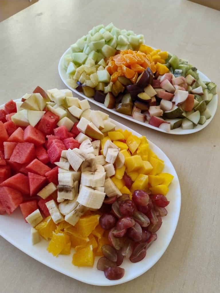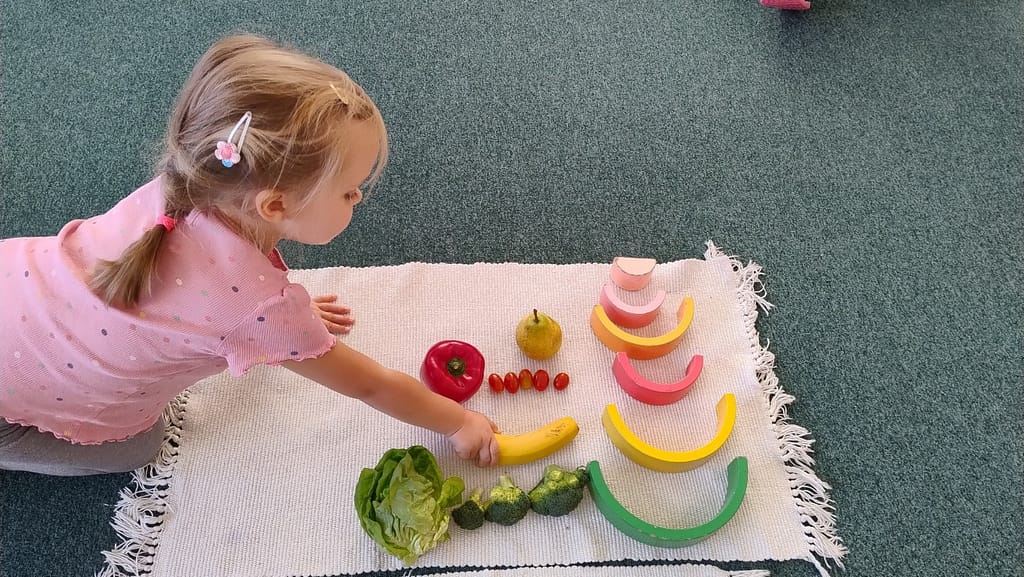 W ostatnim tygodniu października dzieci z naszego przedszkola brały udział w degustacji owoców i warzyw. W ramach programu innowacyjnego „Zdrowo i bez cukru” rozpoznawaliśmy i nazywaliśmy kolory owoców i warzyw. Dzieci zgadywały i określały swoje ulubione smaki i zapachy owocowo – warzywne.